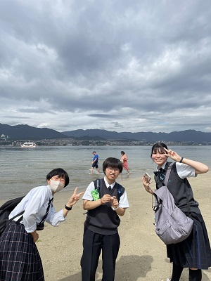 次に訪問したのは、宮島~厳島神社です。海の中にある鳥居はテレビ等で誰もが一度は目にしたことがあるかと思います。広島県内から船に乗り、宮島に向かいます。まずは近寄ってくる鹿に驚きです(北海道にもたくさんいますが…)。荘厳な建築物や島から見える景色に非日常を感じながら、お土産店や露店を楽しみます。