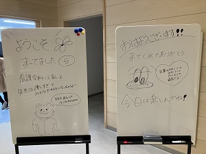 各所、素晴らしい施設や高校生用にわかりやすく学科の説明などをして頂きました。大谷短期大学では現役生からのメッセージボードなどもあり、とても暖かい気持ちになりました。昼食は帯広畜産大学の学食やカフェ「Farm Designs」などを利用させてもらいました。「楽しみながら学ぶ」ことはとても大事だと思います。振り返りでは「業務独占資格に興味が湧きました」と現実的なコメントも。高校生にとってとてもいい時間になったのではと思います。