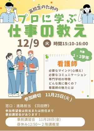 高校生活の折り返しを迎えようとしている2年生は、後期から本格化する自身の進路活動について、より強く意識するきっかけとなった様子。1年生は、上級学校での学びについてイメージをより具体的に持てたことで、今後の学びのモチベーションアップにつながったようでした。