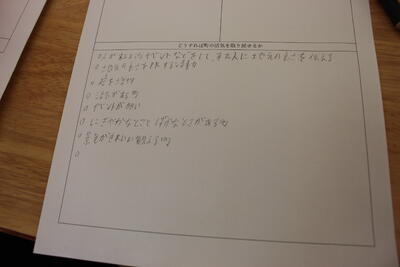 「地域おこし」グループは、第2回・第3回で幕別本町でのフィールドワークを踏まえて、幕別町の魅力・課題について、ワークシートにまとめています。