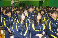 生徒たちは真剣な表情でメモを取り、これから始まる3年間の生活に身を引き締めている様子でした。