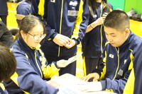 学びの後は、心身をリフレッシュさせるレクリエーションタイム! 体を動かしながら仲間と協力する楽しさを味わい、午前中の緊張感もすっかり解けたようです。生徒たちの明るい笑顔がとても印象的でした。