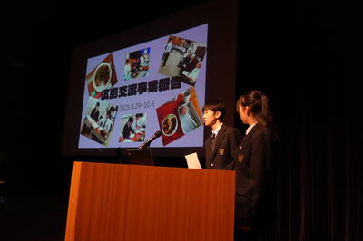 また、9月末に広島県との交流事業に参加した生徒による「広島研修報告」も行われ、現地での学びや平和学習についての貴重な経験が全校生徒に共有されました。