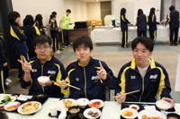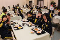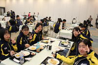 初日の緊張もほぐれ、待ちに待った夕食の時間。 テーブルを囲み、弾んだ声で食事を楽しむ生徒たちの姿が印象的でした。教室とはまた違うリラックスした表情で、仲間との親睦を深める貴重なひとときとなりました。