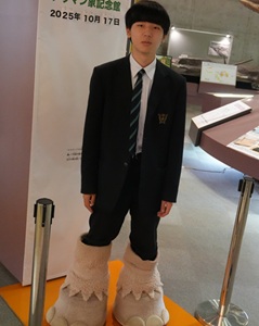 ※記念館のフォトスポットでナウマン象の足型ブーツ(?)を履いて記念撮影