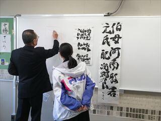 現在、進路活動と北海道学生書道展にむけての作品制作とを両立させている鈴木さんの姿勢は、成果も含めて後輩達の模範となっています。また、前部長の杉本さんは志望校に合格し、特待生試験に向けて頑張っています。