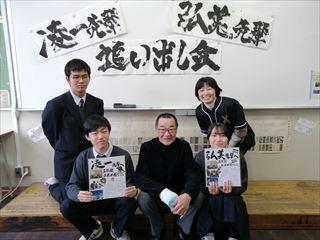 書道部恒例の卒業を祝う会、通称追い出し会を行いました。今年はレパートリーに塩焼きそばが登場し、いつもは書道、時に料理、時に美術、時に音楽、とほぼ総合文化部として活動してきた書道部の大先輩2名を盛大に送り出しました。