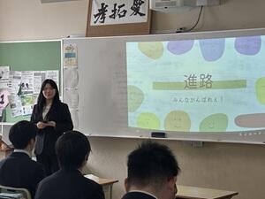 本校には卒業と語る会が毎年、実施されています。卒業後に1・2年生に向けて、3年間や進路活動の軌跡を伝えてもらうものです。3月2日に卒業式を終えたばかりなのですが、とても大人びた雰囲気を感じました。制服ではなくスーツ姿であったからでしょうか。ただ語る会で見せた彼らの姿はその見た目以上に心や人間性が大きく成長していると感じさせてくれるものでした。伝わりやすいようにタブレットでスライドを自作し原稿を準備し、控室では練習している姿も…彼らの口から出る率直で真っすぐな言葉に在校生も心を傾けて聞いてくれていました。そんな瞬間に、我々の教職員の活動はもしかしたら正解だったのではと、ある種の答えのようなものが卒業生からもらえている気がします。5期生92名がこれから幸せを掴むために躍動していってくれることを祈っています。