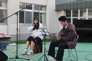 とある2年生徒が始めたトワイライトフェス。ちょっとだけストーリーを。開校して初めての後夜祭(打ち上げ花火)を企画していた第1期生徒会。しかし、その時はコロナ禍でした。感染防止の観点から後夜祭は計画したものの中止。そんな3年生の先輩の悲しそうな姿を見て「花火を見せてあげたい」という想いからスタートしました。秋口に3年生を応援したい気持ちをカタチにということで、放課後に開催する「3年生進路活動応援イベント」として作られました。そんなストーリーは今の清陵生にも引き継がれ、今年も開催。生徒会やそれをお手伝いする自主運営によって開催されています。夕暮れを背に、音楽やミニ企画を実施し「楽しみながら、誰かのために」に…とても素敵な活動です。